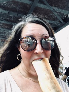 I thought I would head back toward my hotel and see if I could find food along the way. Everyone else was bustling about, wrapped in French flags or wearing team apparel, heading to their watch parties. Entire streets were closed off to contain the masses and prevent vehicles from getting too close to pedestrians. I just wanted some lunch. I finally came upon a restaurant that wasn’t super packed, but when I got there I was informed that their kitchen had closed. So I popped into the next boulangerie I came across and bought a baguette. Now at least I had an entire arm’s length of delicious, warm bread to sustain me.