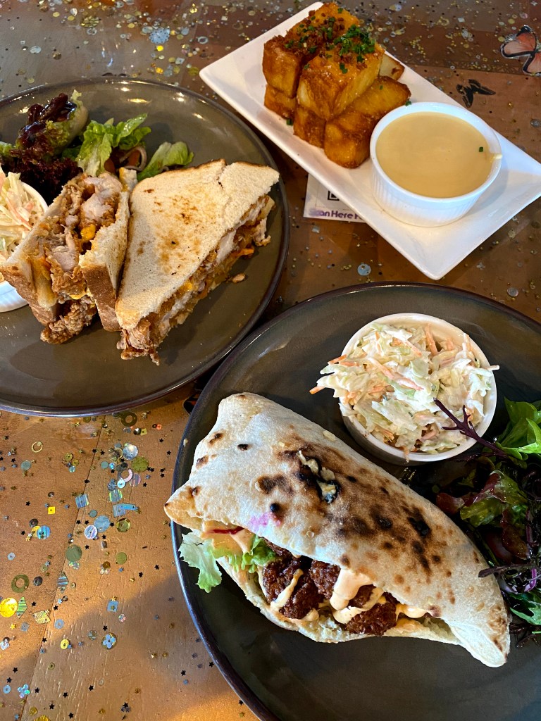 Lunch at Loko in Waterford featured Million Dollar Fries, layers of thinly sliced potatoes cut into bars and deep fried, and served with cheese sauce, a Korean fried chicken sandwich, and falafel stuffed into homemade pita.