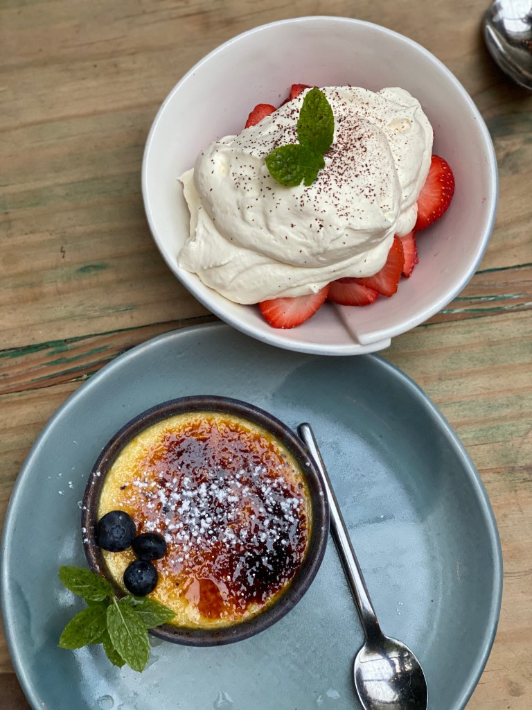 Dinner at The Black Pig, a quaint wine bar in Kinsale, and my favorite meal of the entire trip, included a tomato salad heaped with crumbled feta, parsley and red onions; arancini with some sort of yummy dipping sauce (it’s been awhile, I can’t remember the specifics); cheese ravioli with peas, cream and parmesan (and I don’t usually like peas, but this was amazing); and for dessert, a classic dish of strawberries with cream, and of course crème brûlée.
